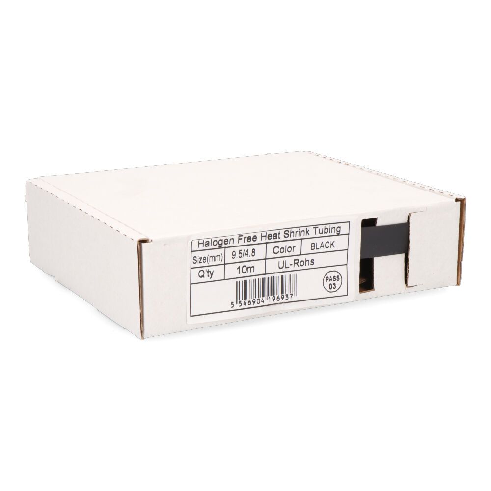 Caja Termoretractil Dosificadora Ø9,5 - 4,8 Mm; 10M. Caja Dosificadora Neutra Termo-Retractil Ø9,5 - 4,8 Mm; Color Negro 10M. Primera Medida Antes De Contraer Y La Segunda Máxima Contracción Tras Calentado.