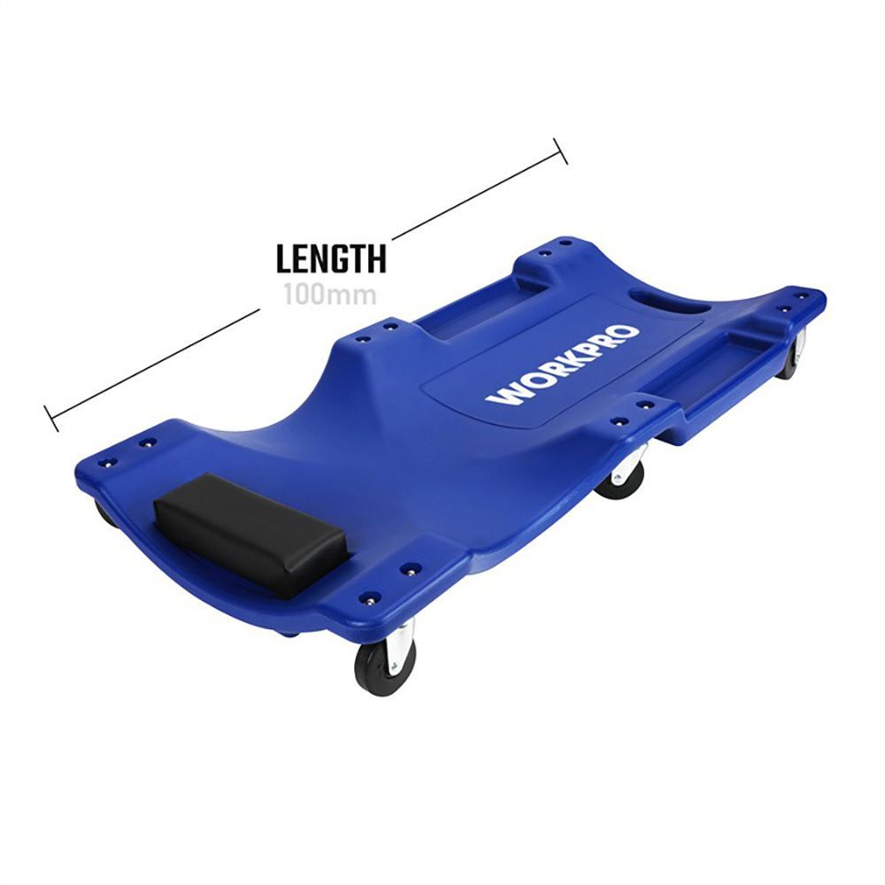 Camilla De Mecánico 100 Cm, Hecha De Plástico De Gran Durabilidad, Distancia Al Suelo Reducida De 12 Cm, Adaptada Al Cuerpo Para Proporcionar Un Confort Óptimo Y Con Un Cojín En La Parte De La Cabeza Para Mayor Comodidad, 6 Ruedas De Nailon Con Rodamientos De Alta Calidad De 16 X 75 Mm, Carga Máxima 120 Kg, Azul