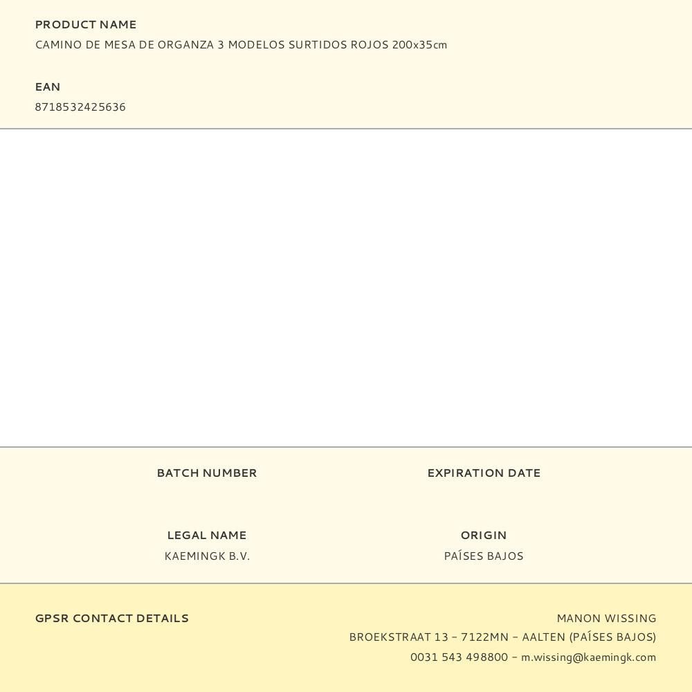 Camino De Mesa De Organza 3 Modelos Surtidos Rojos 35 X 200 Cm