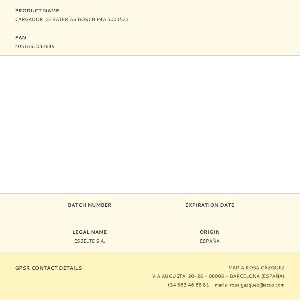Cargador De Baterías Bosch P4A 5001523