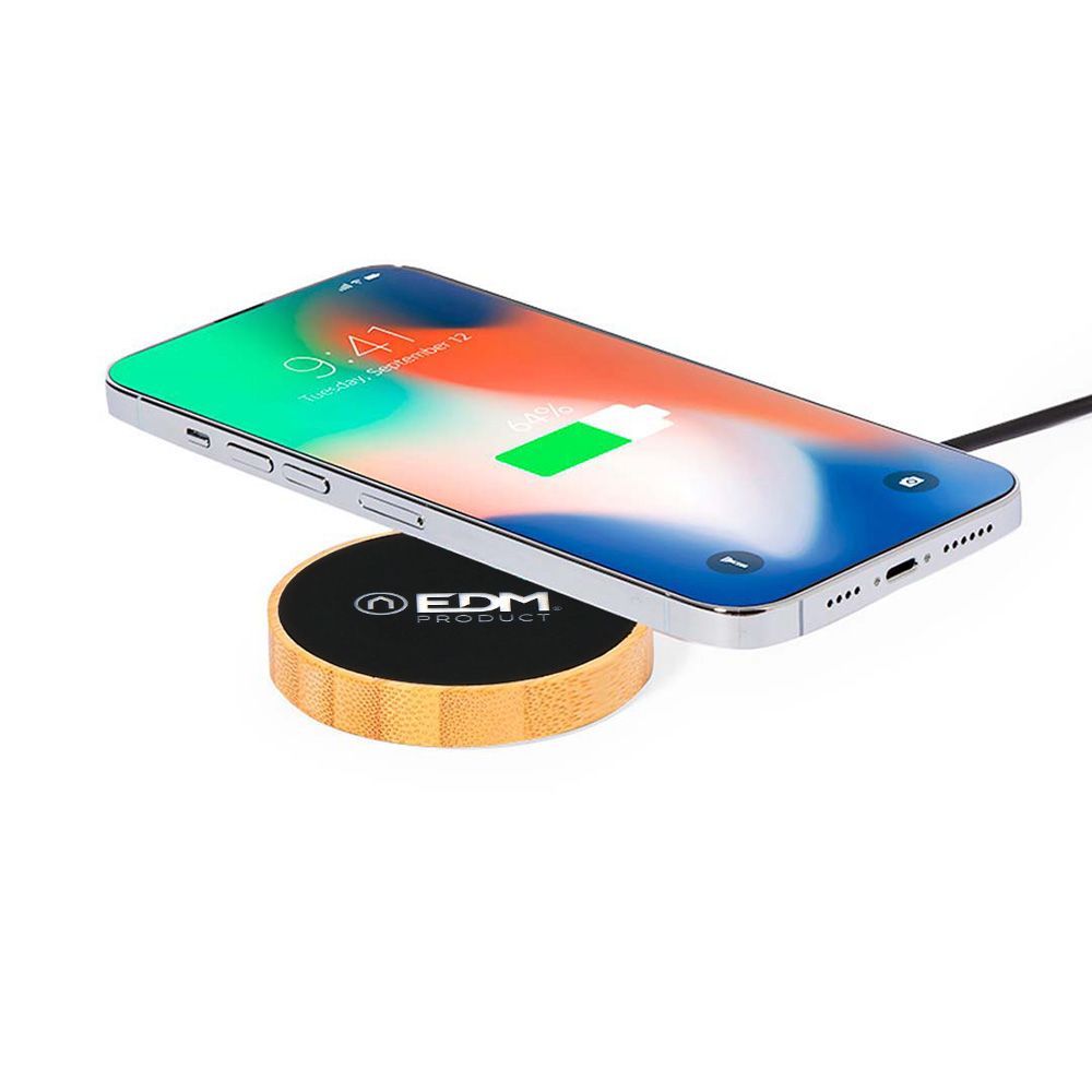Cargador Inalámbrico Circular, Función De Carga 15 W, Luz Led Interior, Fabricado En Bambú, Compatible Con Dispositivos Equipados Con Tecnología De Carga Inalámbrica Qi, Base Antideslizante, Incluye Cable Cargador Tipo C, Ø6,8 X 1,1 Cm