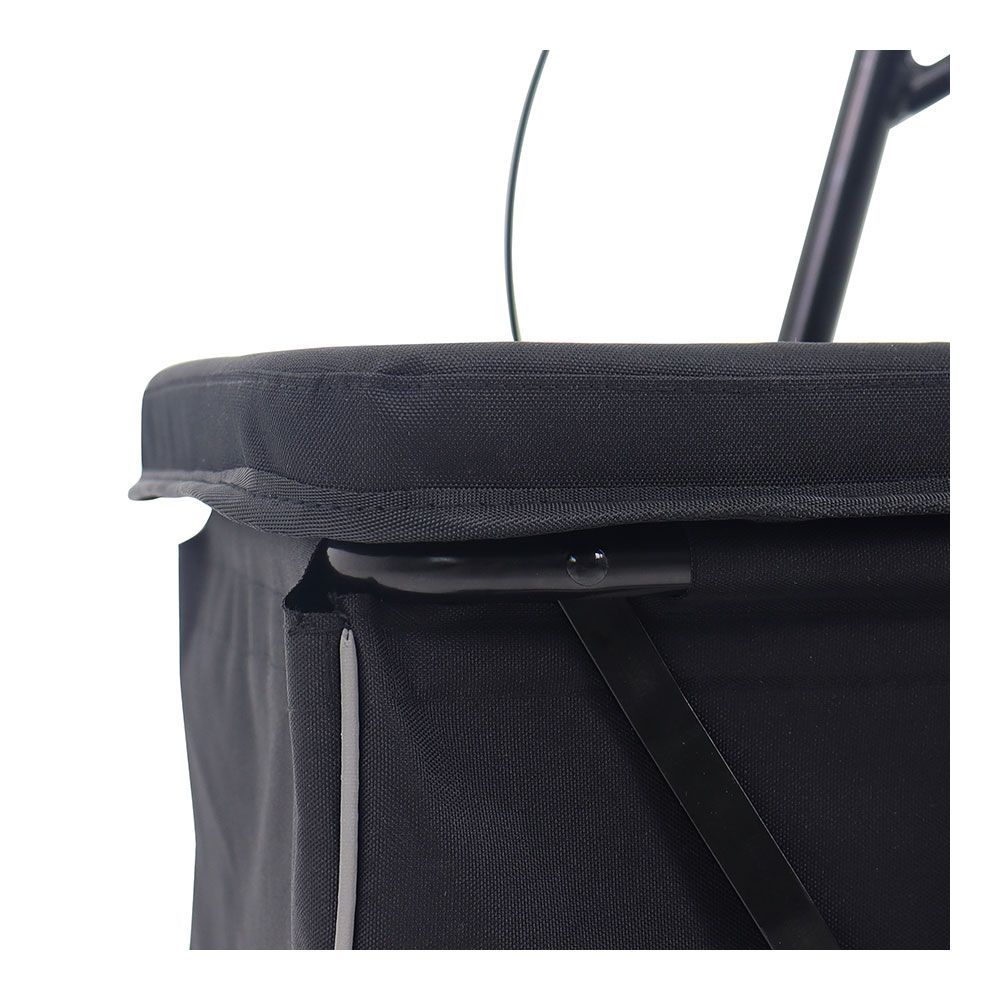 Carro De Compra Plegable Con Asiento Y 4 Ruedas, 2 Direccionables Con Bloqueo. Con Una Capacidad De Peso Máxima De 100 Kg. Y Una Capacidad De Carga Máxima De 4,5 Kg Para La Bolsa Que Lleva El Carro. Con Palanca De Freno, Pieza De Bloqueo De Freno Y Ajuste De La Empuñadura Hasta La Altura Deseada. Dimensiones Abierto 4 Ruedas: 505 X 602 X 1015 Mm. Dimensiones Plegado: 505 X 360 X 870 Mm