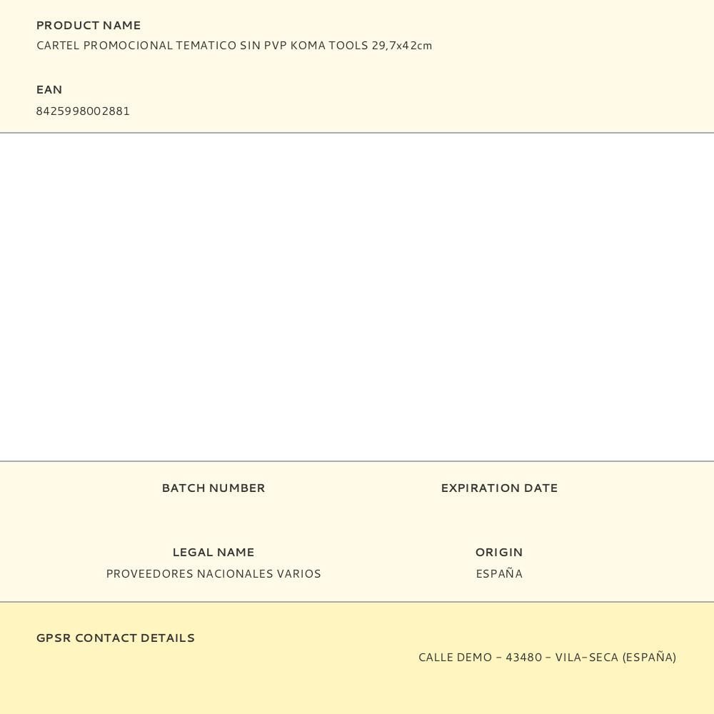 Cartel Promocional Tematico Sin Pvp Koma Tools 29,7X42Cm