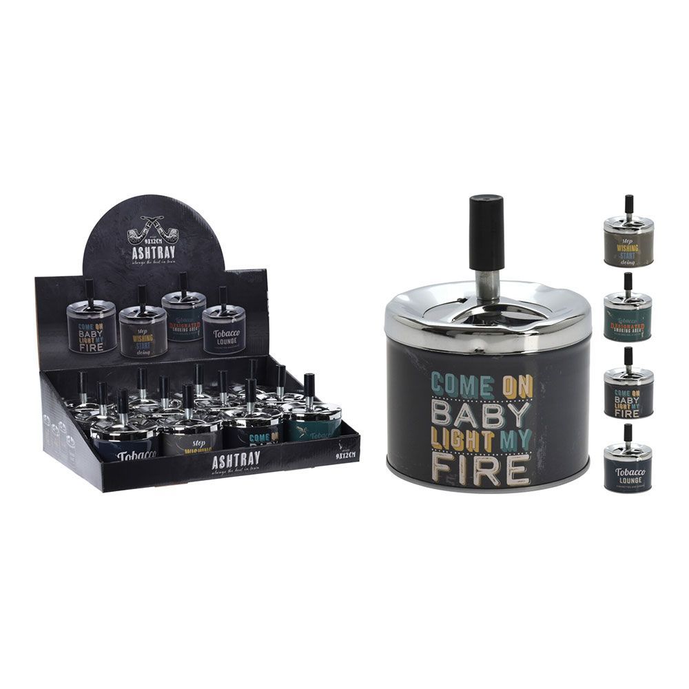Cenicero Con Sistema Giratorio Para Almacenar La Ceniza, Acero Cromado Ø9 X 12 Cm, Modelos Surtidos Vintage. Expositor 12 Unidades