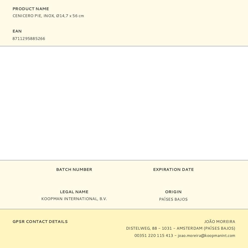 Cenicero Pie, Inox, Ø14,7 X 56 Cm