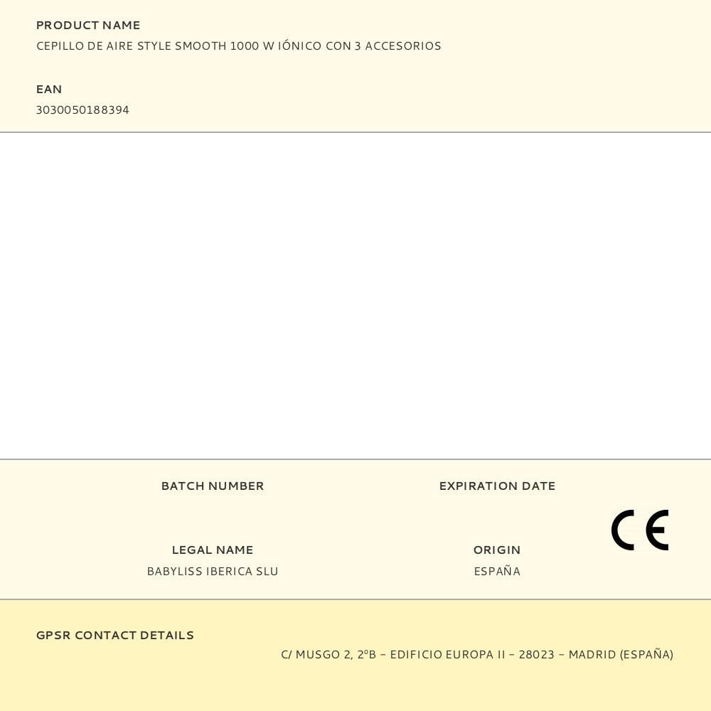 Cepillo De Aire Style Smooth Ha Sido Diseñado Para Secar, Alisar Y Dar Volumen En Todo Tipo De Cabellos, Proporcionando Un Acabado Profesional Desde Casa. 1000 W. Incluye Tres Accesorios Versátiles: Cepillo Voluminizador Ovalado, Cepillo Alisador Y Boquilla De Secado, Ideales Para Crear Peinados Con Volumen, Movimiento O Un Acabado Liso Y Natural. Con Tecnología Iónica Que Neutraliza La Electricidad Estática Para Un Cabello Más Suave Y Sin Encrespamiento. Dispone De 2 Ajustes De Temperatura Y Velocidad, Más Un Botón De Aire Frío Para Fijar El Peinado. Cable De 2,2 M, Incluye Bolsa De Almacenamiento