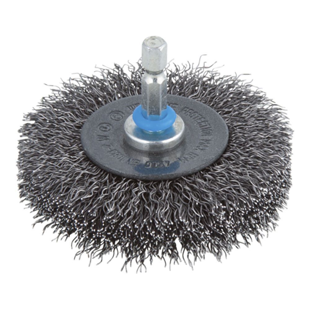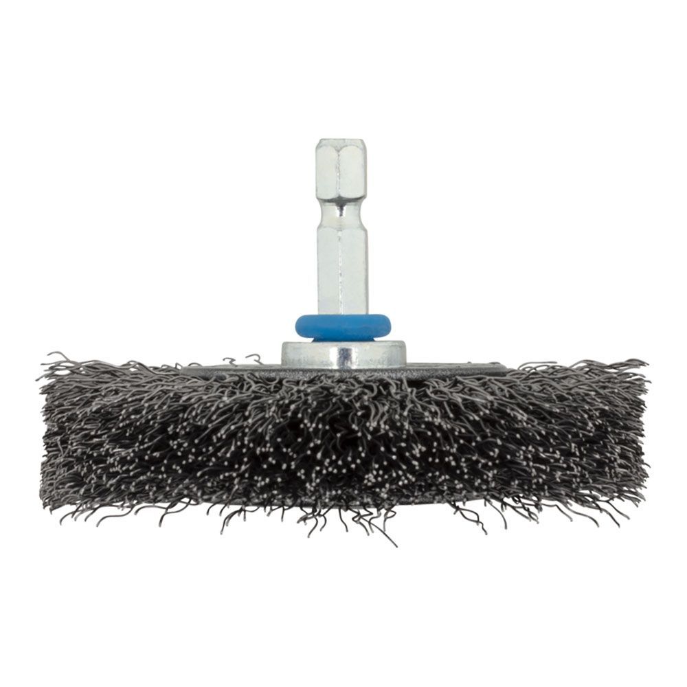 Cepillo De Disco De Alambre De Acero Ø75 X 16 Mm, Longitud Del Alambre 17 Mm, Vástago Hexagonal De 6,35 Mm - ¼ Pulg, Longitud De Vástago 27 Mm, 4500 Rpm