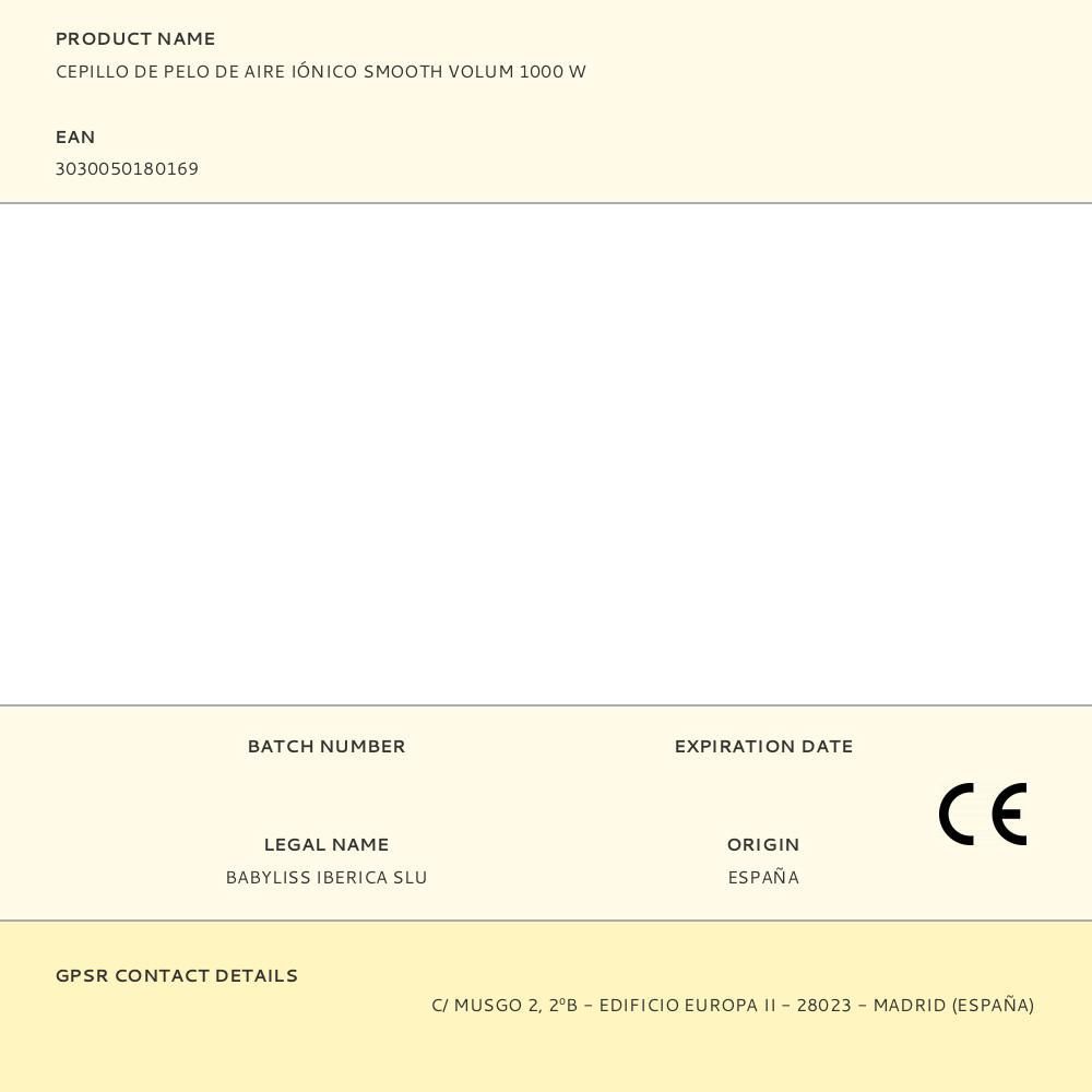 Cepillo De Pelo De Aire Iónico Smooth Volum 1000 W