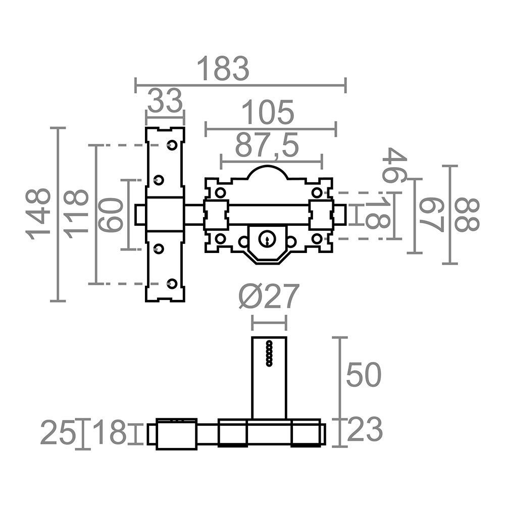 Cerrojo Sobreponer Crr07 105L/50 Mm, Pintado Gris, Llaves Iguales Amaestradas