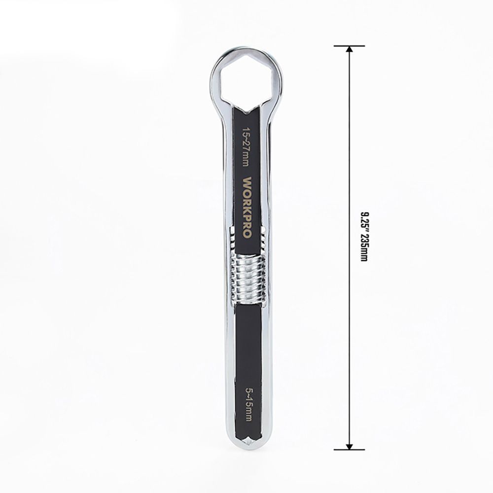 Llave Ajustable Universal, Métrica Y Sae, 5 - 27 Mm. Se Utiliza Para Quitar Pernos Redondeados Oxidado O Pintado, De Acero Forjado Cromo Vanadio. Apertura De La Mandíbula: 7 - 22 Mm, Textura Antideslizante. Girar Para Ajustar El Tamaño