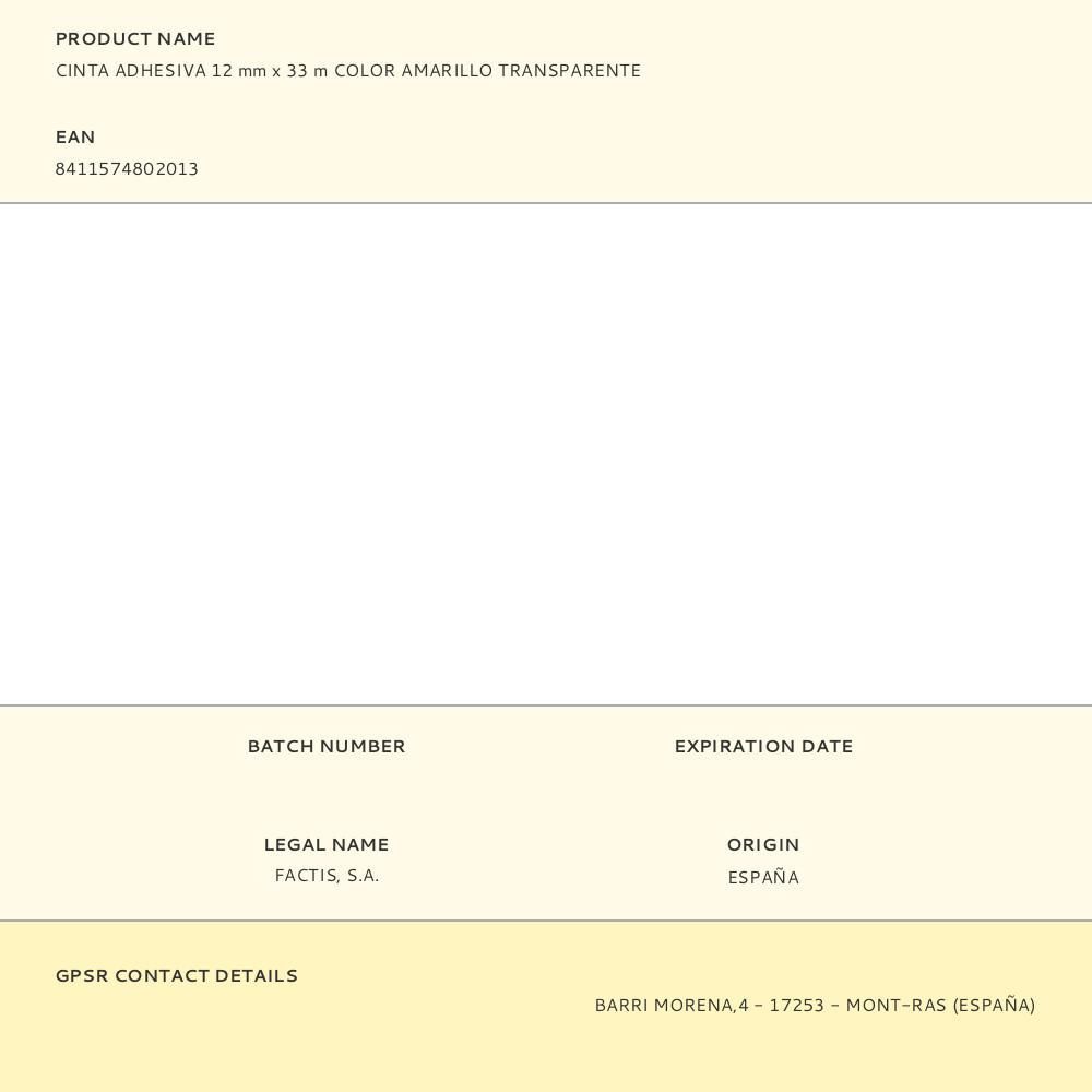 Cinta Adhesiva 12 Mm X 33 M Color Amarillo Transparente