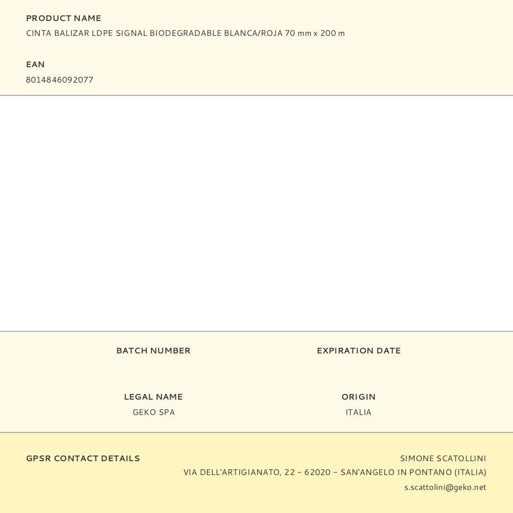 Cinta Balizar Ldpe Signal Biodegradable Blanca/Roja 70 Mm X 200 M