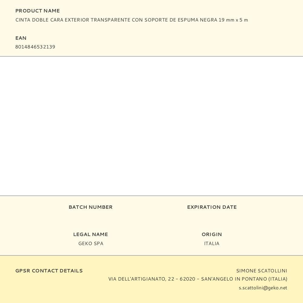 Cinta Doble Cara Exterior Transparente Con Soporte De Espuma Negra 19 Mm X 5 M