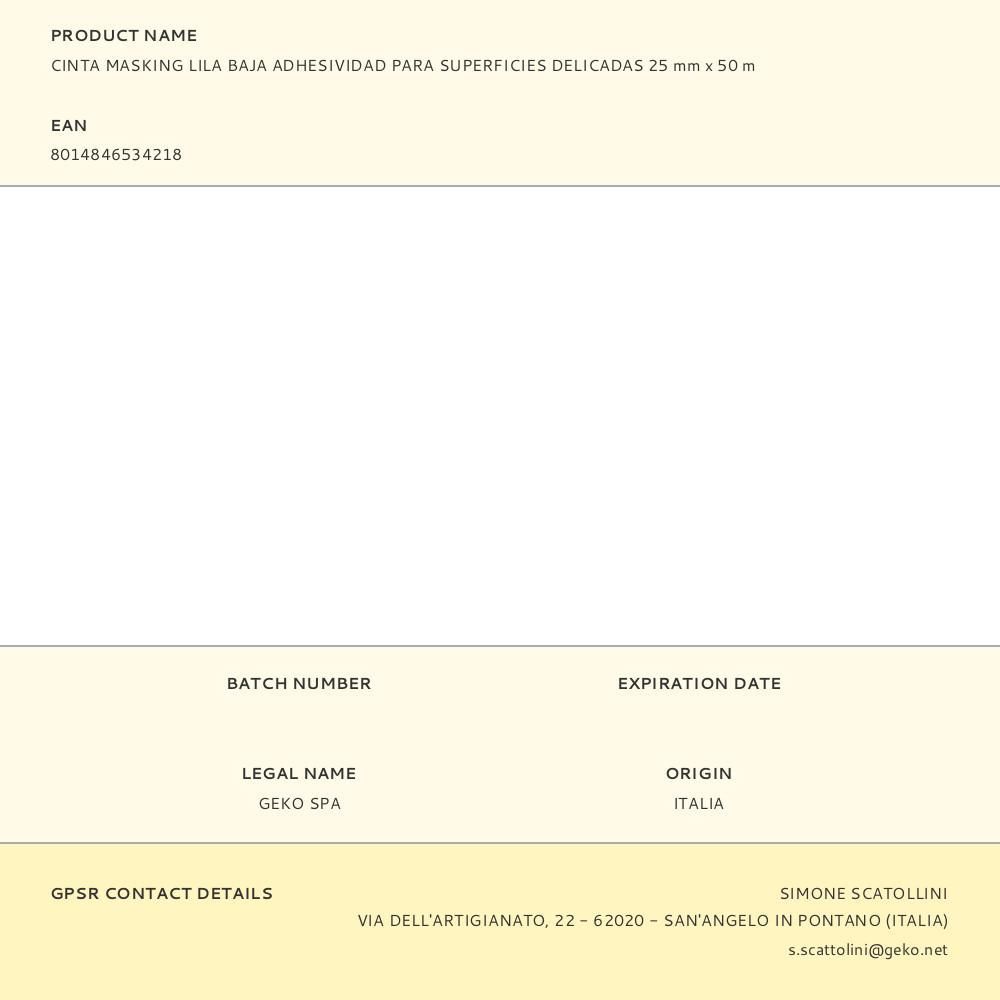 Cinta Masking Lila Baja Adhesividad Para Superficies Delicadas 25 Mm X 50 M