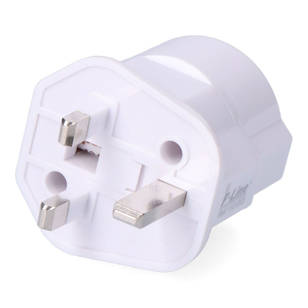 Adaptador De Enchufe Con Clavija Inglesa (Clavija Bs-1363 Macho) A Clavija Europea (Clavija Schuko Hembra), Incorpora Fusible De 13 A, Blanca, 70 X 50 Mm (Retractilado)