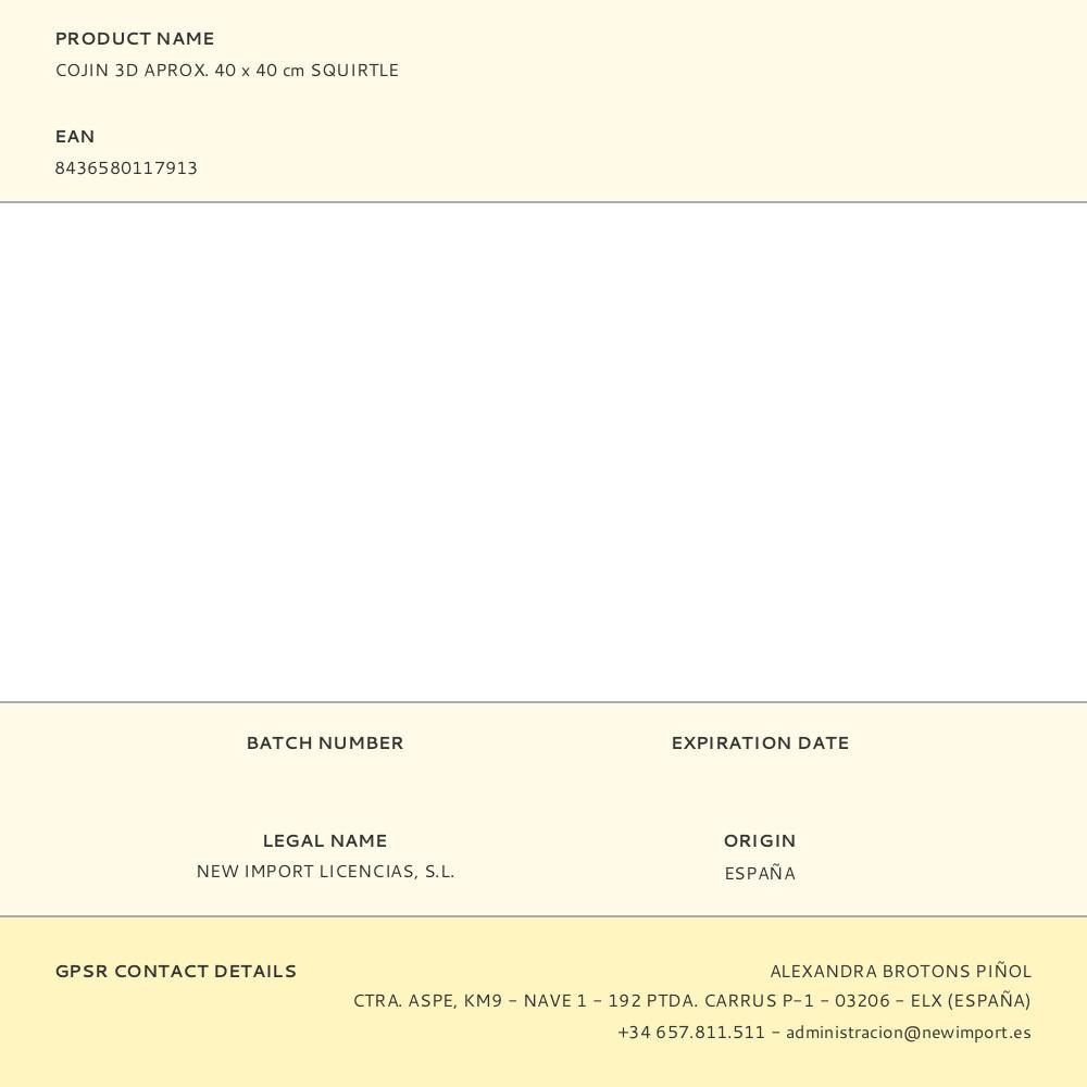 Cojin 3D Aprox. 40 X 40 Cm Squirtle