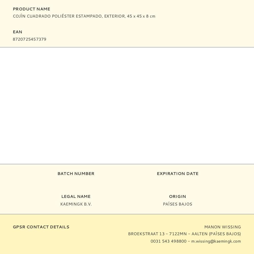 Cojín Cuadrado Poliéster Estampado, Exterior, 45 X 45 X 8 Cm