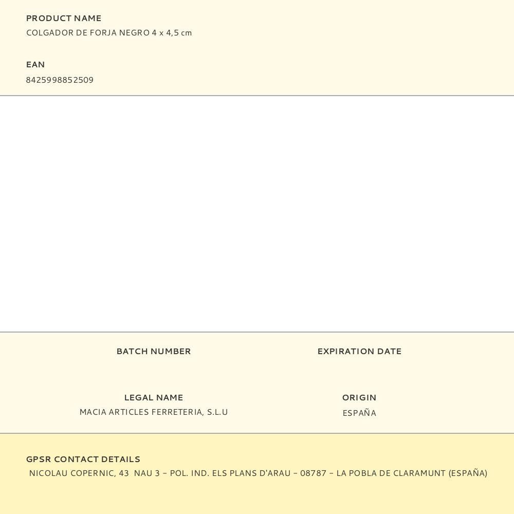 Colgador Sencillo Forja Negro 4 X 4,5Cm