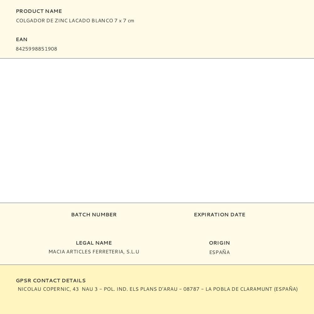 Colgador De Zinc Lacado Blanco 7 X 7 Cm