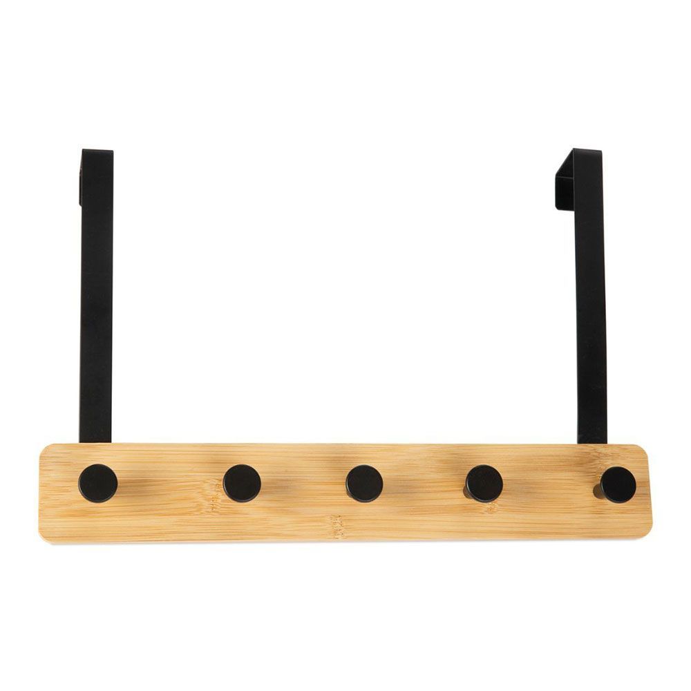 Colgador Sobrepuerta De Metal Negro Y Madera 38 X 25 Cm
