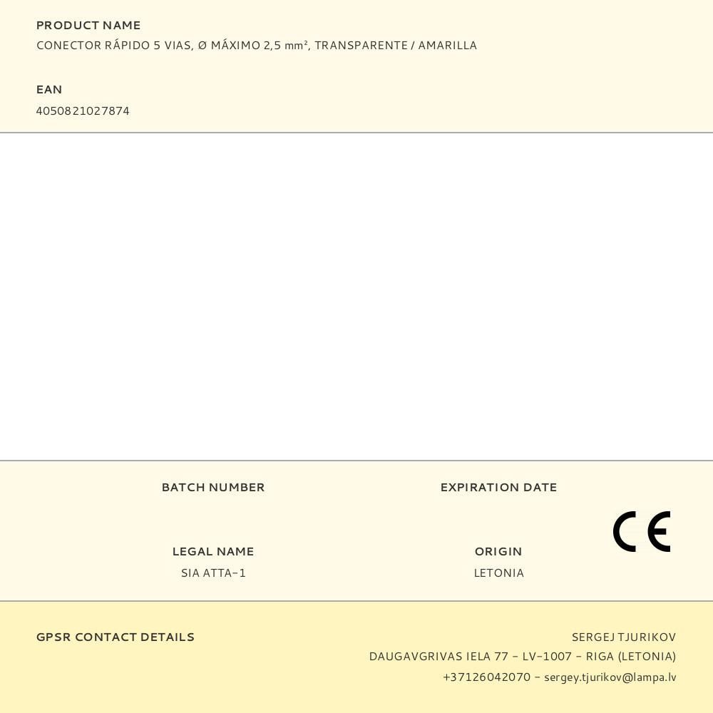 Conector Rápido 5 Vias, Ø Máximo 2,5 Mm², Transparente / Amarilla