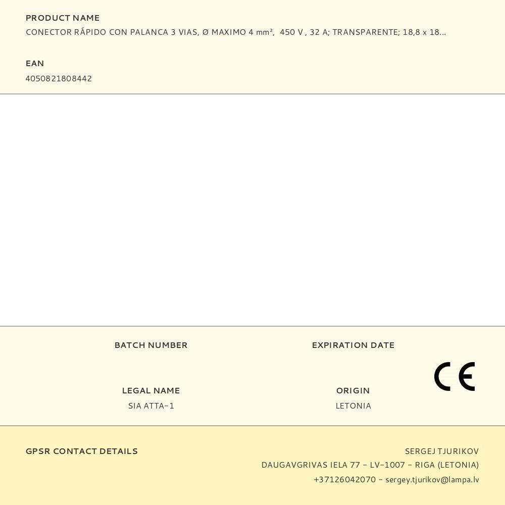 Conector Rapido Con Palanca, Para 3 Conductores Rigidos, Semirigidos O Flexibles De Cobre, Diametro Entre 0,14 A 4 Mm², 450 V, 32 A, Temperatura Maxima 85°C, Policarbonato Transparente, 18,8 X 18,6 X 8,4 Mm