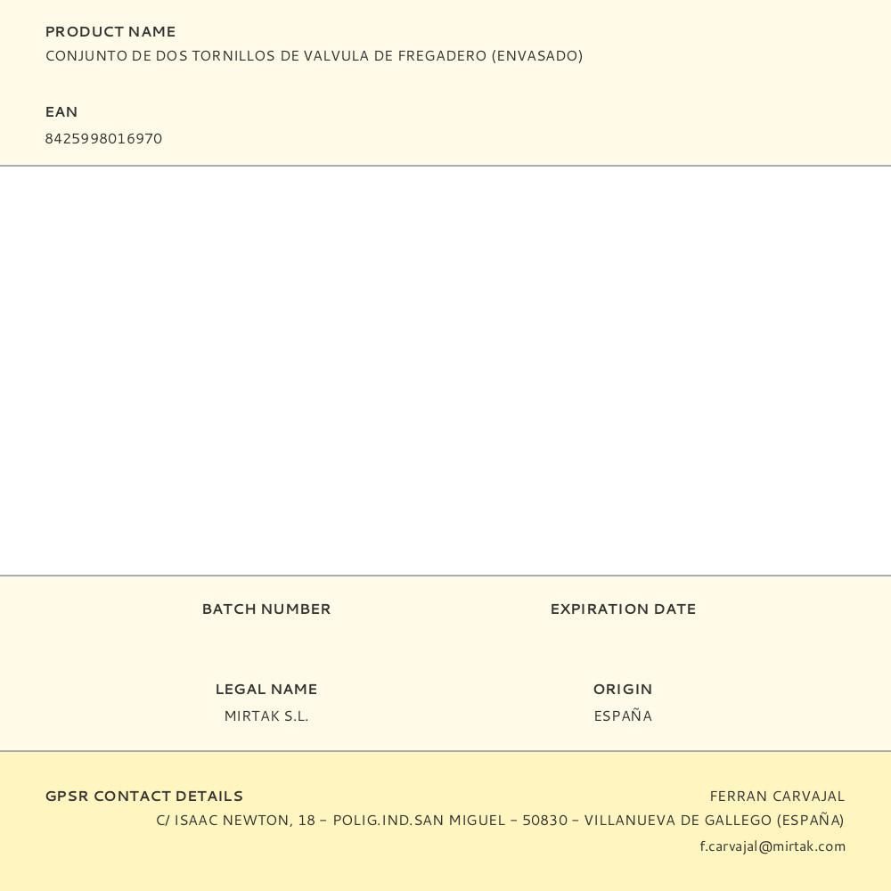 Conjunto De Dos Tornillos De Valvula De Fregadero (Envasado)