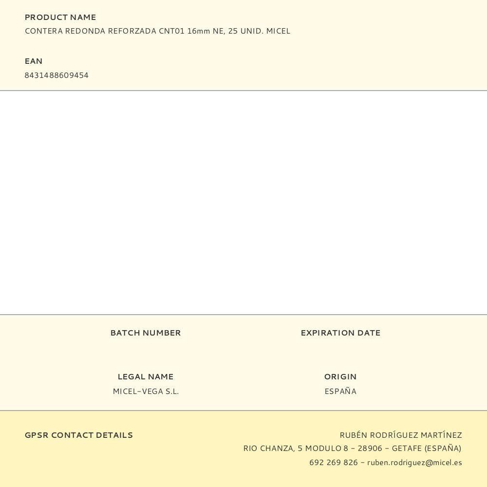 Contera Redonda Reforzada Cnt01 16Mm Ne, 25 Unid. Micel