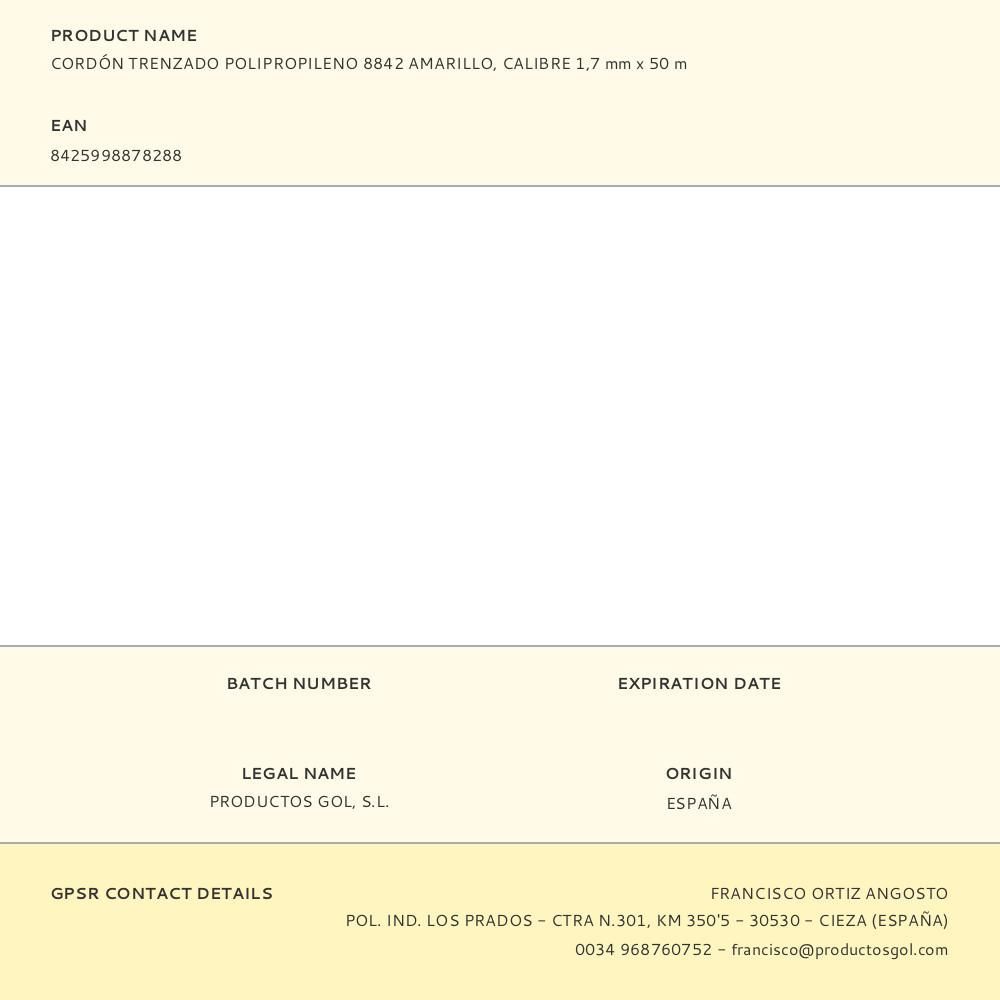 Cordón Trenzado Polipropileno 8842 Amarillo, Calibre 1,7 Mm X 50 M
