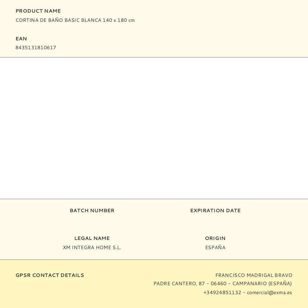 Cortina De Baño Basic Blanca 140 X 180 Cm