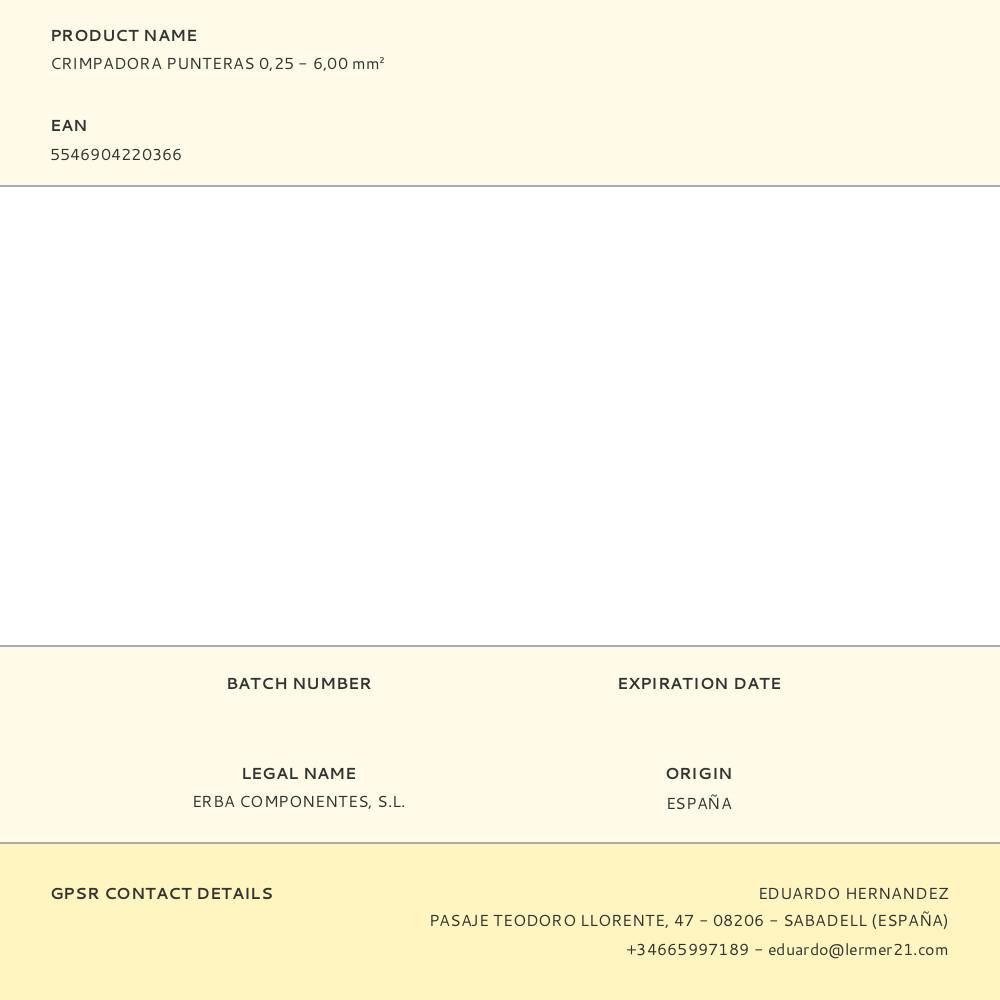 Crimpadora Punteras Electricas, Prensado Hexagonal 0,25 - 06,00 Mm²