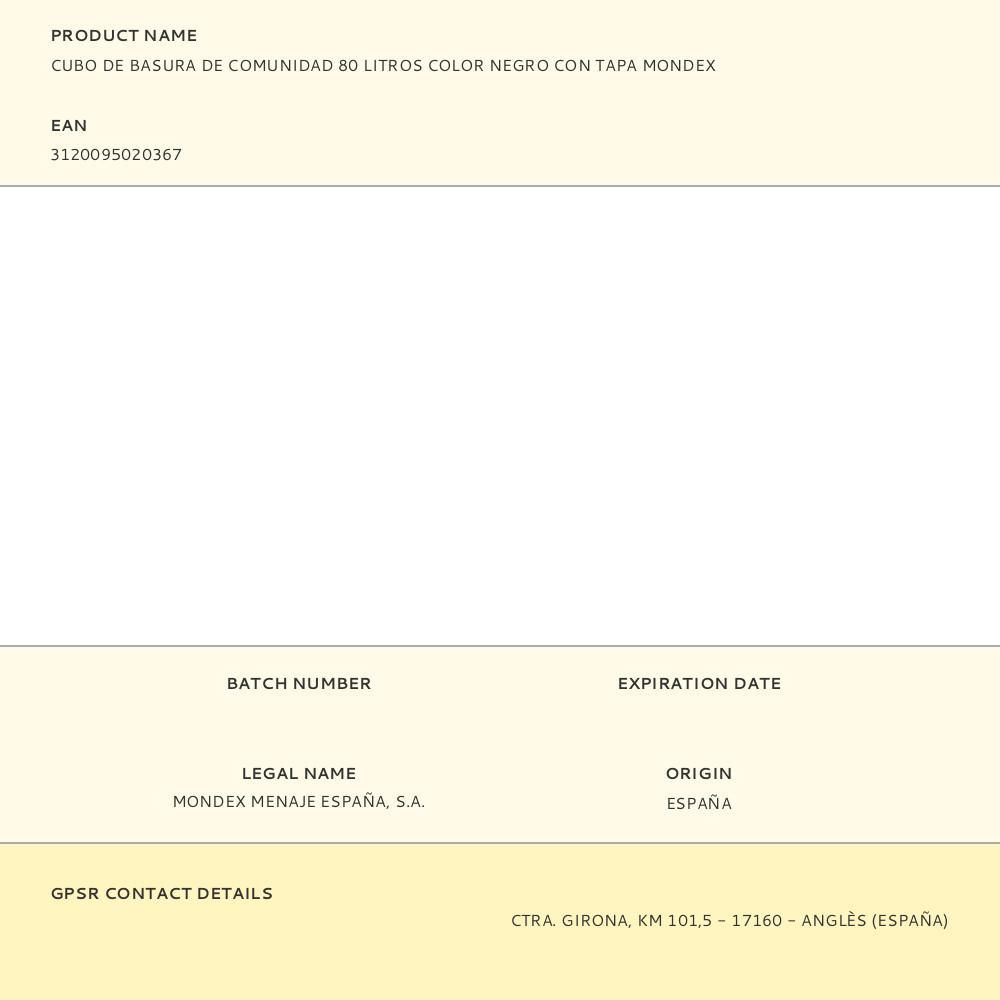 Cubo De Basura De Comunidad 80 Litros. Color: Negro. Tamaño: Ø49,5X55,5Cm (Diámetro/Alto) Material: Polipropileno. Mondex.