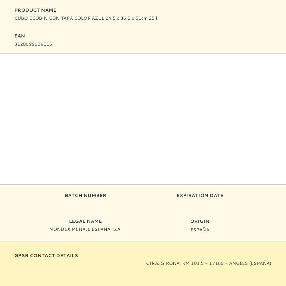 Cubo Ecobin Con Tapa Color Azul 24,5 X 36,5 X 51Cm 25 L. Material: Polipropileno