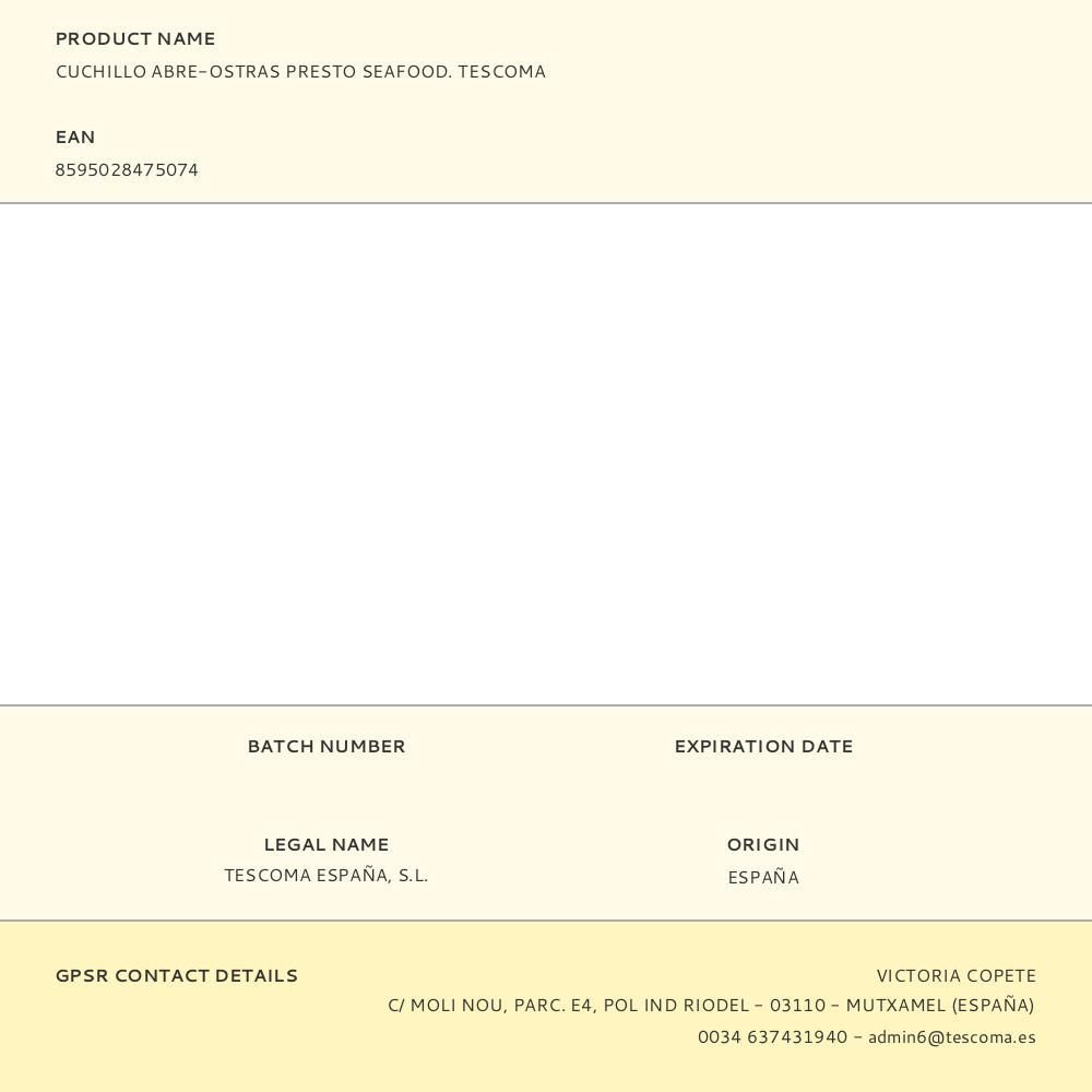 Cuchillo Abre-Ostras Presto Seafood. Excelente Para Abrir Ostras Fácilmente. Fabricado En Acero Inoxidable De Alta Calidad Y Plástico Resistente. Apto Para Lavavajillas. Garantía De 3 Años
