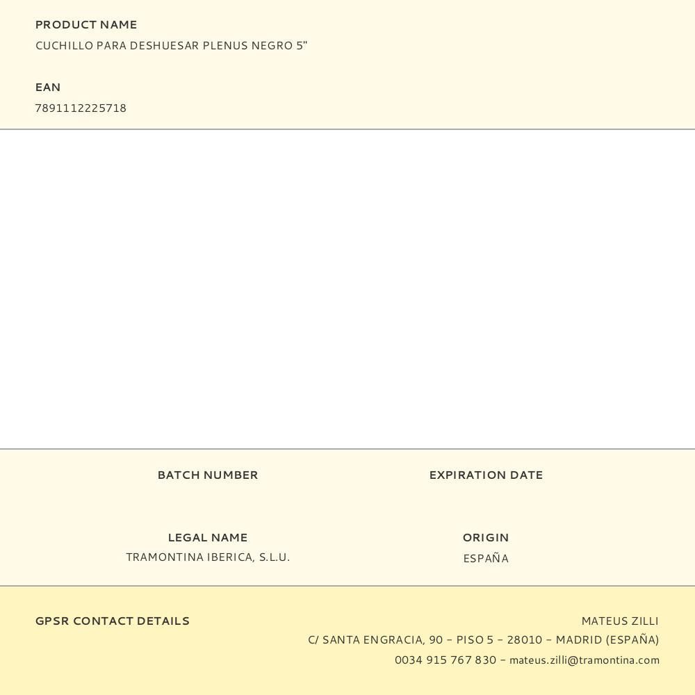 Cuchillo Para Deshuesar Plenus Negro 127 Mm Fabricado En Acero Inoxidable Contratamiento Térmico Y Mango De Polipropileno Que Proporcionan Una Mayor Resistencia Y Durabilidad
