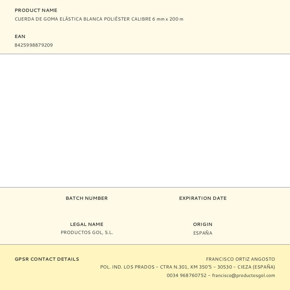 Cuerda De Goma Elástica Blanca Poliéster Calibre 6 Mm X 200 M