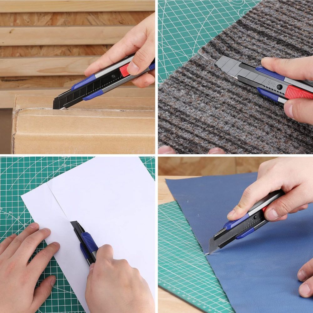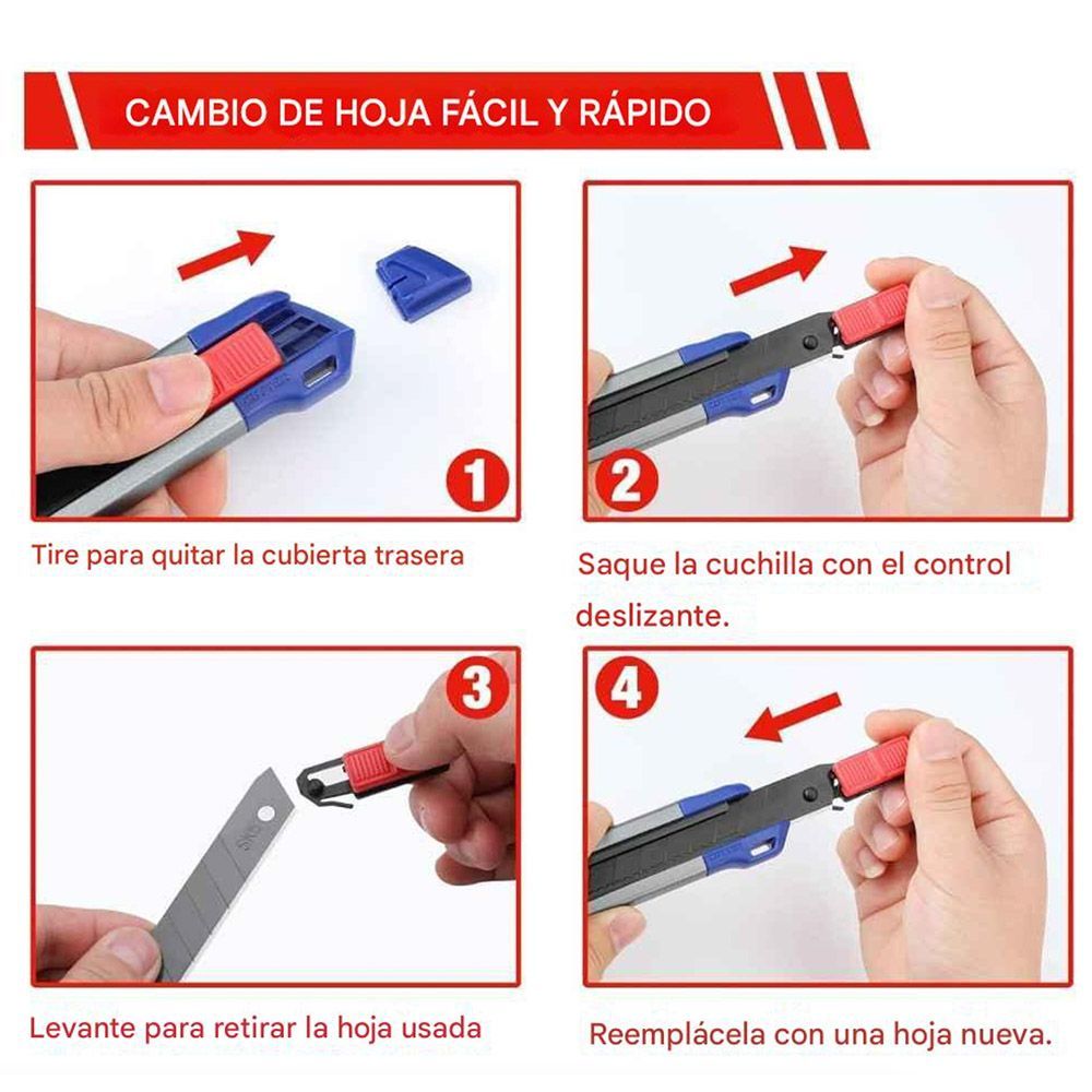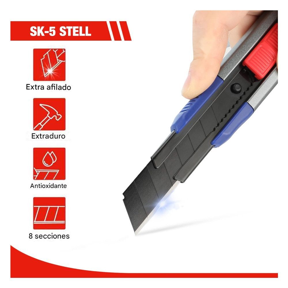 Cúter Cierre A Presión + 11 Cuchillas 18 Mm, Mango De Aluminio, 11 Cuchillas De 8 Secciones. Cuchilla Sk5