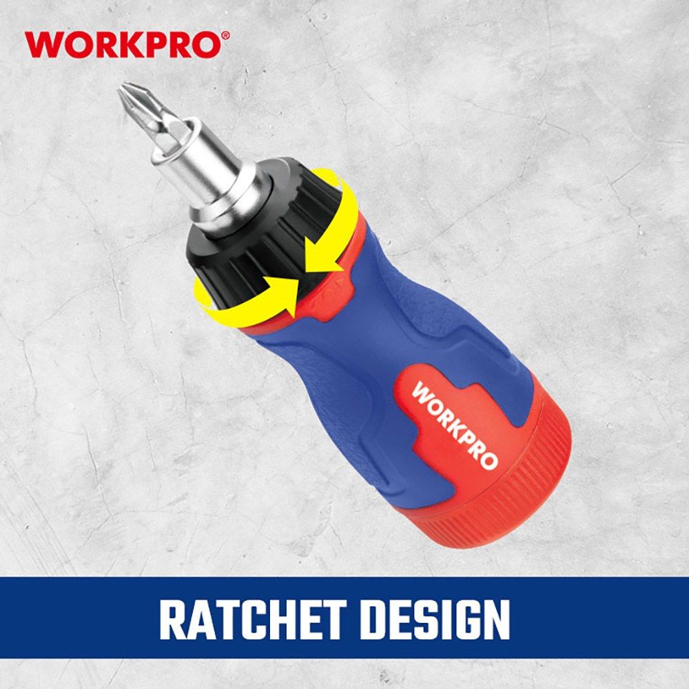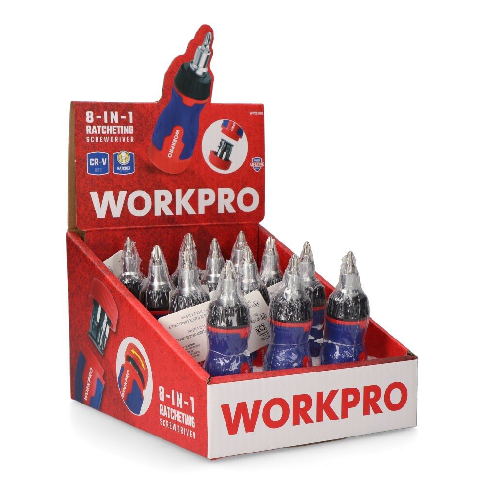 Destornillador Corto De Carraca 8 En 1, Incluye: 1 Destornillador De Carraca Corto De 30 Dientes Con Mango Ergonómico Y Soporte Magnético, 7 Puntas De Destornillador De Cromo Vanadio De 25 Mm: 3 Phillips: Ph1, Ph2 Y Ph3, Planas: Sl5 Y Sl6, Torx: T15 Y T25, 115 X 37 X 36,5 Mm. Presentado En Expositor De 12 Uds