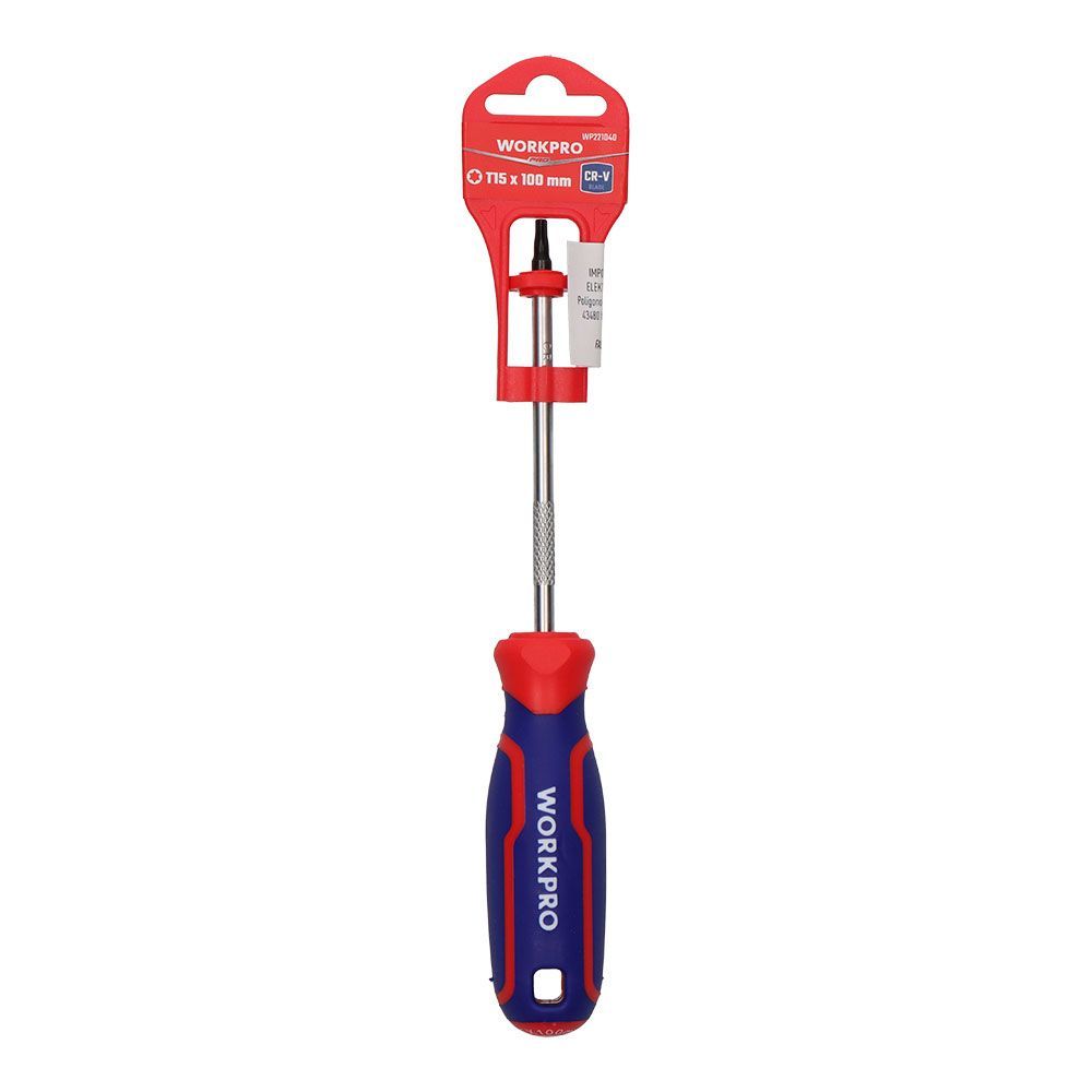 Destornillador Torx T15 X 100 Mm. Cuerpo De Cromo-Vanadio. Punta Magnética Negra. Mango Tricolor Ergonomico De Agarre Cómodo. Azul Y Rojo