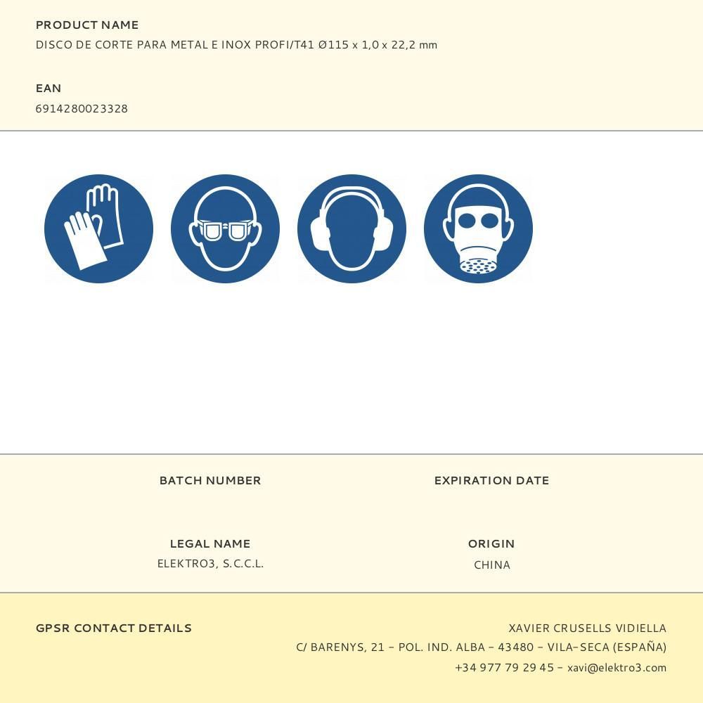 Disco De Corte Metal E Inox T41, Profi, Ø115 X 1,0 X 22,2 Mm