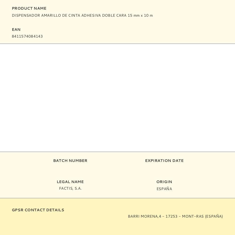 Dispensador Amarillo De Cinta Adhesiva Doble Cara 15 Mm X 10 M