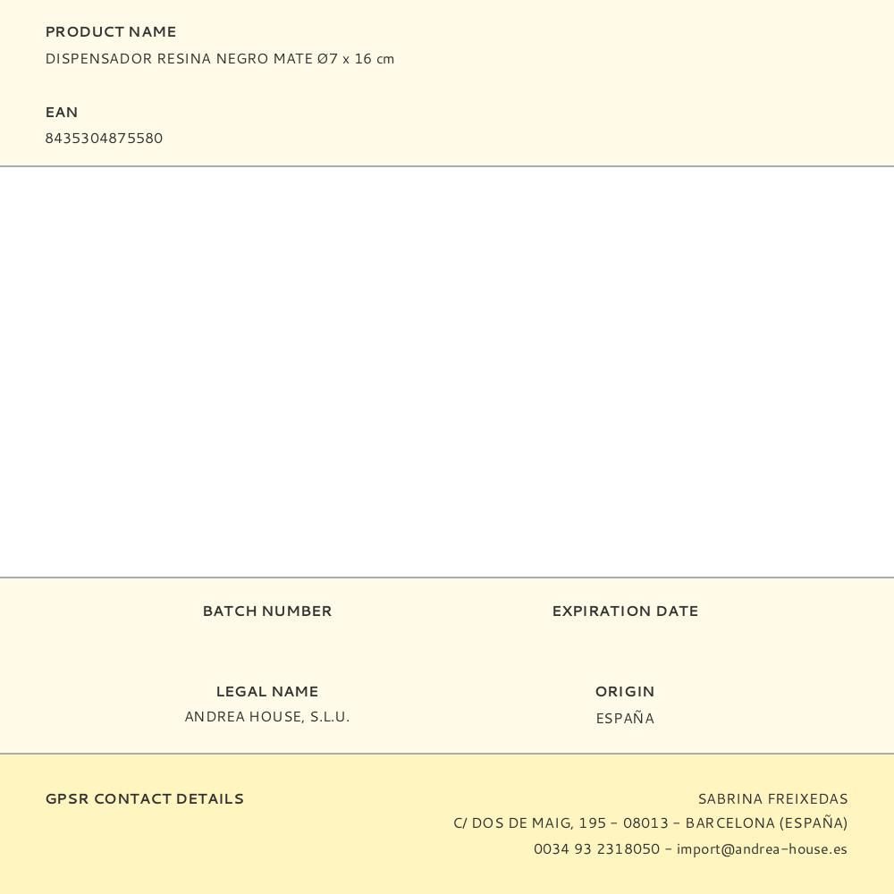 Dispensador Resina Negro Mate Ø7 X 16 Cm
