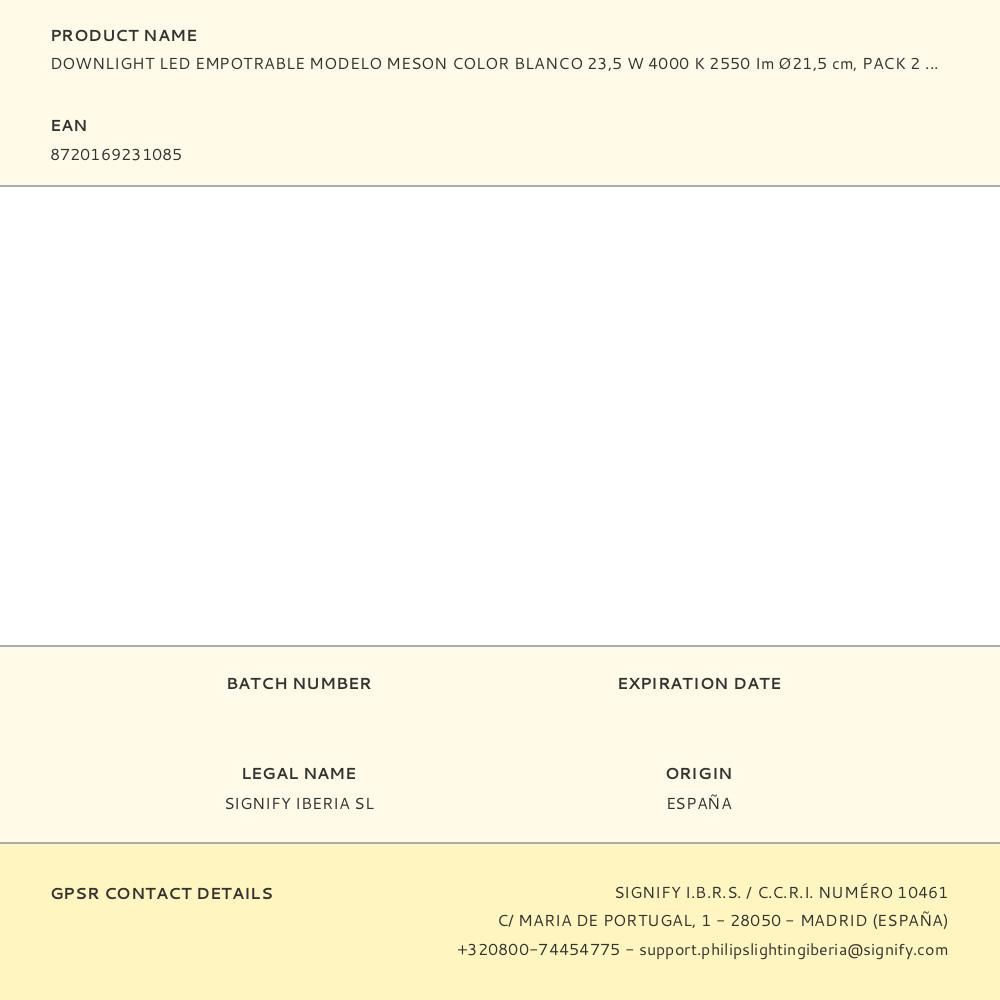 Pack 2Uds Meson Downlight Blanco, Ø215Mm, 23,5W 4000K 2550Im. Philips
