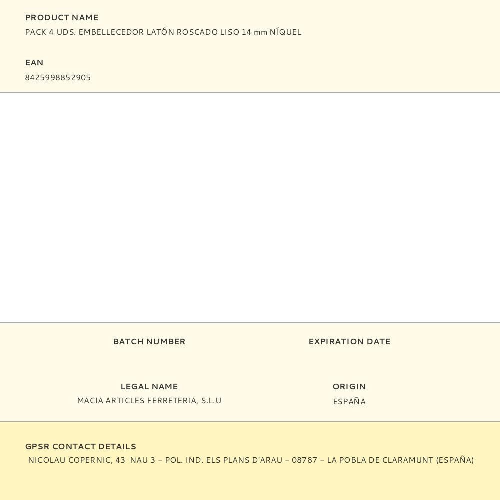 Embellecedor Latón Roscado Liso 14 Mm Níquel, 4 Uds