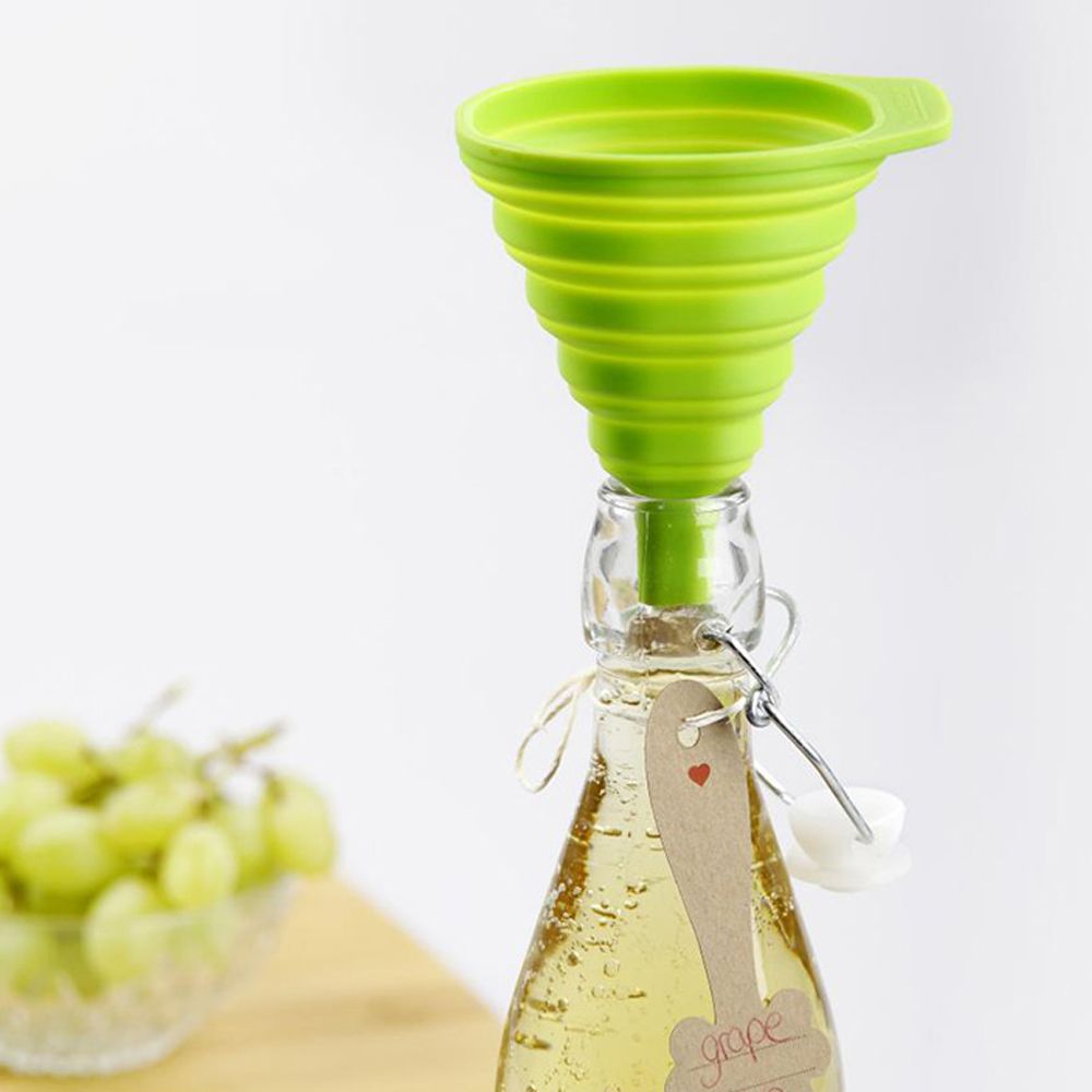 Embudo Plegable De Silicona, Food&More, Material: Silicona, Ø85X35-100Mm, Excelente Para Pasar Líquidos De Un Recipiente A Otro Sin Que Se Derramen, Especialmente Para Llenar Botellas Que Tienen El Cuello Estrecho, Apto Para Lavavajillas, Color Verde