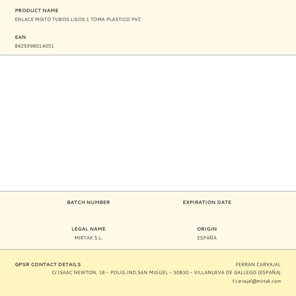 Enlace Mixto Tubos Lisos 1 Toma Plastico Pvc