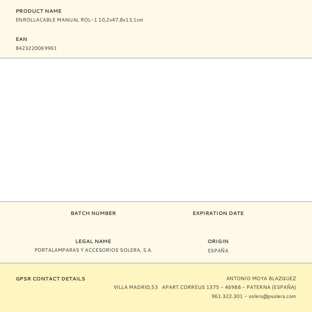 Enrollacable Manual Rol-1 Dimensiones: 10,2X47,8X13,1Cm (Ancho/Fondo/Alto) Solera