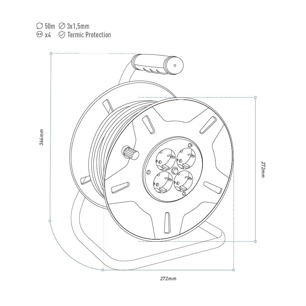 Enrollacables Con Protector Térmico 3X1,5Mm 50M 4 Tomas 230 V 16 A Ip20