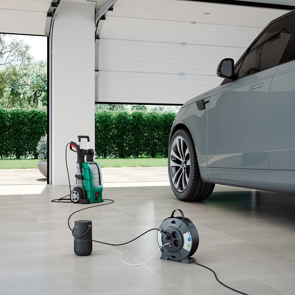 Enrollacables Con 2 Usb A, 3 Tomas 2P+Tt Schuko, 16 A, 230 V~, H05Vv-F 3 G 1,5 Mm², 5 M, Negro/Gris