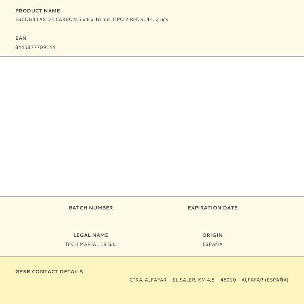 Escobillas De Carbon 5 X 8 X 18 Mm, Ref. 9144. El Producto Se Sirve Por Parejas, Siendo Compatibles Con Las Principales Marcas De Máquinas Electroportátiles. Busca Tu Modelo De Escobilla En: Https://Grafitosmarjal.Com/
